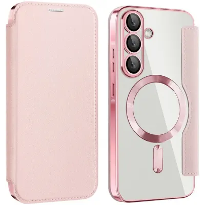 Coque portefeuille Phonesta Luxury Crystal avec MagSafe pour Samsung Galaxy A36/A56 - Rose