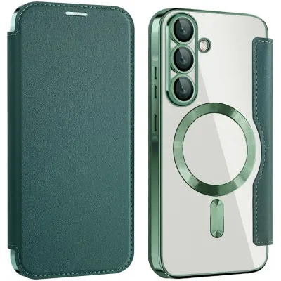 • Coque portefeuille Phonesta Luxury Crystal avec MagSafe pour Samsung Galaxy A36/A56 - Vert foncé