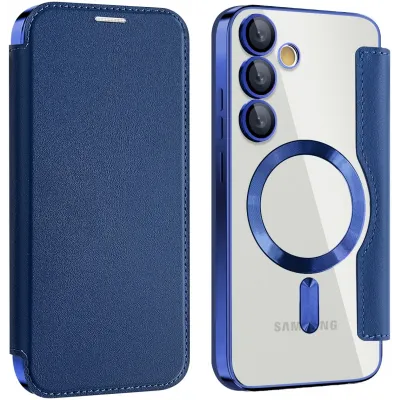 • Coque portefeuille Phonesta Luxury Crystal avec MagSafe pour Samsung Galaxy S24 FE - Bleu foncé