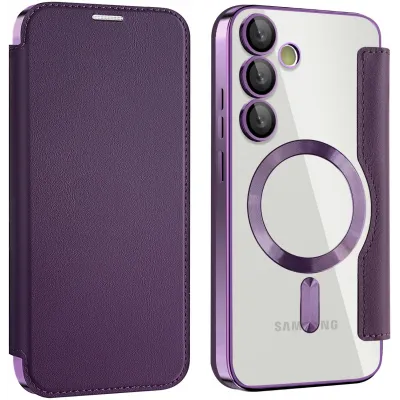 • Coque portefeuille Phonesta Luxury Crystal avec MagSafe pour Samsung Galaxy S24 FE - Violet foncé