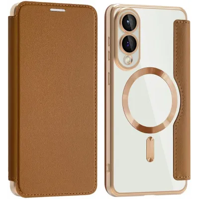 Coque portefeuille Phonesta Luxury Crystal avec MagSafe pour Samsung Galaxy S25 Edge - Marron
