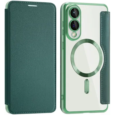 • Coque portefeuille Phonesta Luxury Crystal avec MagSafe pour Samsung Galaxy S25 Edge - Vert foncé