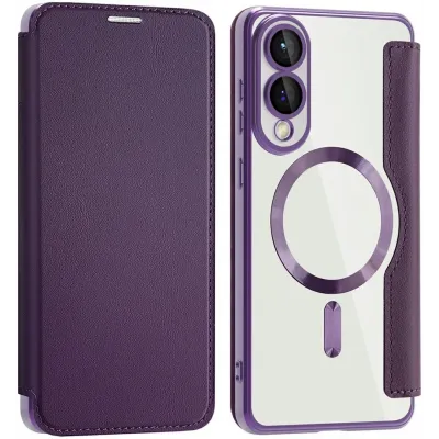 • Coque portefeuille Phonesta Luxury Crystal avec MagSafe pour Samsung Galaxy S25 Edge - Violet foncé