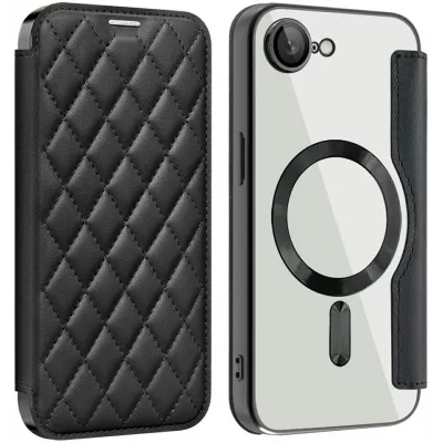 Coques de téléphoneCoques pour Apple iPhoneCoques Apple iPhone 17eCoque portefeuille Phonesta Luxury Crystal Puffed avec MagSafe pour Apple iPhone 17e/16e - Noir