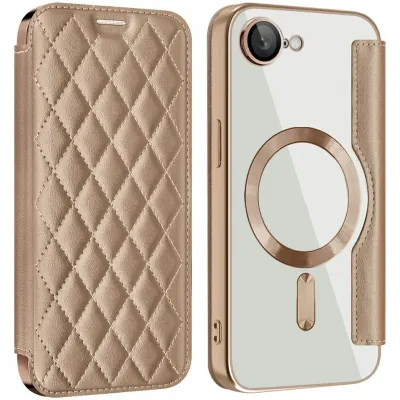 • Coque portefeuille Phonesta Luxury Crystal Puffed avec MagSafe pour Apple iPhone 17e/16e - Or désert