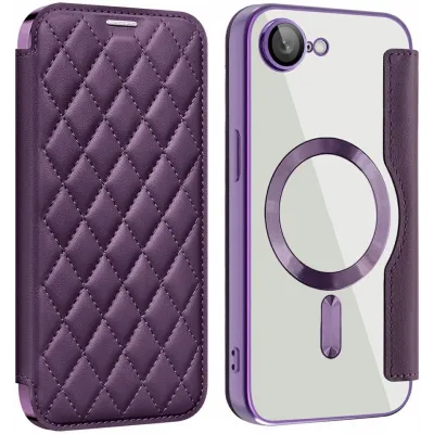 • Coque portefeuille Phonesta Luxury Crystal Puffed avec MagSafe pour Apple iPhone 17e/16e - Violet foncé