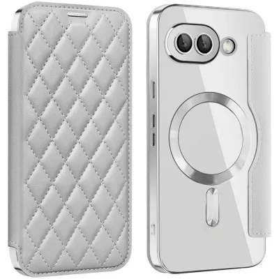 Coques de téléphoneCoques pour GoogleCoques Google Pixel 9aCoque portefeuille Phonesta Luxury Crystal Puffed avec MagSafe pour Google Pixel 9a - Argent