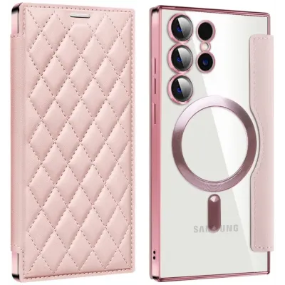 Coque portefeuille Phonesta Luxury Crystal Puffed avec MagSafe pour Samsung Galaxy S24 Ultra - Rose