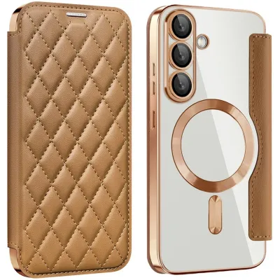 • Coque portefeuille Phonesta Luxury Crystal Puffed avec MagSafe pour Samsung Galaxy S25 Plus/S24 Plus - Marron