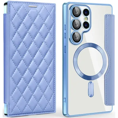 Coques de téléphoneCoques pour Samsung GalaxyCoques Samsung Galaxy S25 UltraCoque portefeuille Phonesta Luxury Crystal Puffed avec MagSafe pour Samsung Galaxy S25 Ultra - Bleu clair