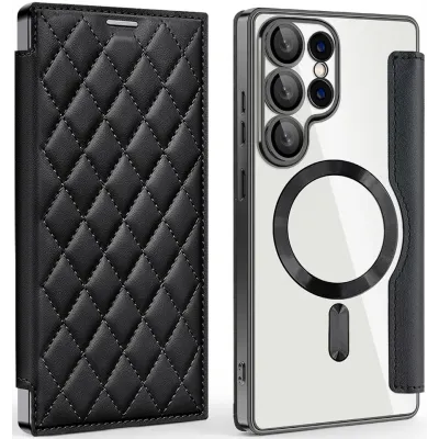 Coques de téléphoneCoques pour Samsung GalaxyCoques Samsung Galaxy S25 UltraCoque portefeuille Phonesta Luxury Crystal Puffed avec MagSafe pour Samsung Galaxy S25 Ultra - Noir