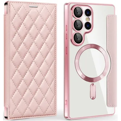 Coques de téléphoneCoques pour Samsung GalaxyCoques Samsung Galaxy S25 UltraCoque portefeuille Phonesta Luxury Crystal Puffed avec MagSafe pour Samsung Galaxy S25 Ultra - Rose