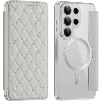 Coques de téléphoneCoques pour Samsung GalaxyCoques Samsung Galaxy S26 UltraCoque portefeuille Phonesta Luxury Crystal Puffed avec MagSafe pour Samsung Galaxy S26 Ultra - Argent