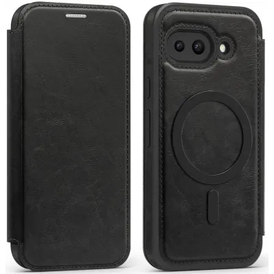 Coque portefeuille Phonesta Luxury Leather avec MagSafe pour Google Pixel 9a - Noir