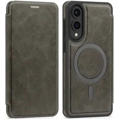 • Coque portefeuille Phonesta Luxury Leather avec MagSafe pour Samsung Galaxy S25 Edge - Gris