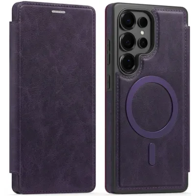 • Coque portefeuille Phonesta Luxury Leather avec MagSafe pour Samsung Galaxy S25 Ultra - Violet foncé