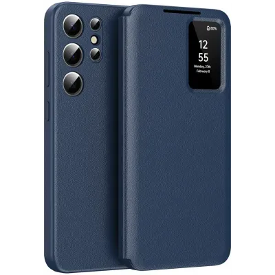 • Coque portefeuille Phonesta Smart Window pour Samsung Galaxy S24 Ultra - Bleu foncé
