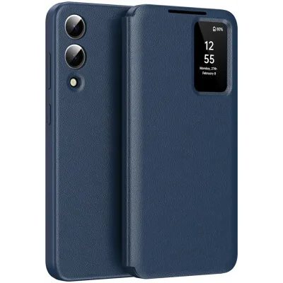 • Coque portefeuille Phonesta Smart Window pour Samsung Galaxy S25 Edge - Bleu foncé