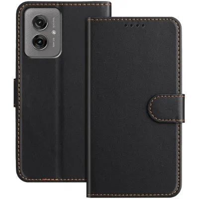 Coque portefeuille Phonesta Leather Vertical Flip pour Motorola Moto G55 - Noir