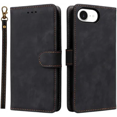 Coque portefeuille Phonesta Vintage Skin pour Apple iPhone 17e/16e - Noir