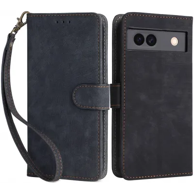 Coque portefeuille Phonesta Vintage Skin pour Google Pixel 8a - Noir