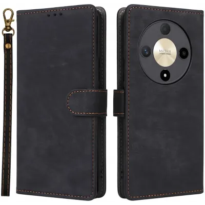 • Coque portefeuille Phonesta Vintage Skin pour HONOR Magic6 Lite - Noir
