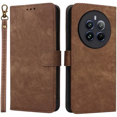 • Coque portefeuille Phonesta Vintage Skin pour Realme 12 Pro/12 Pro Plus - Marron
