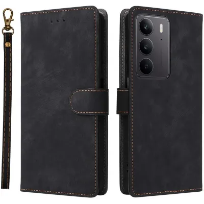 • Coque portefeuille Phonesta Vintage Skin pour Realme 14x / C75 - Noir