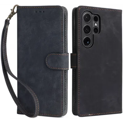 Coque portefeuille Phonesta Vintage Skin pour Samsung Galaxy S24 Ultra - Noir