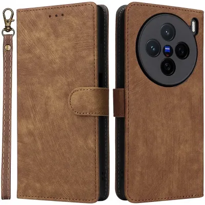 • Coque portefeuille Phonesta Vintage Skin pour Vivo X200 - Marron