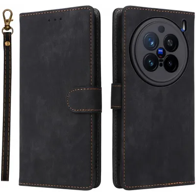 • Coque portefeuille Phonesta Vintage Skin pour Vivo X200 Pro - Noir