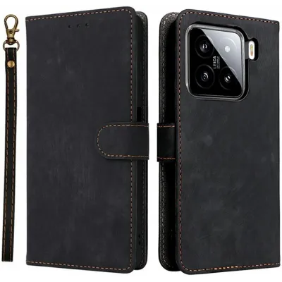 Coque portefeuille Phonesta Leather Vertical Flip pour Xiaomi 15 - Noir